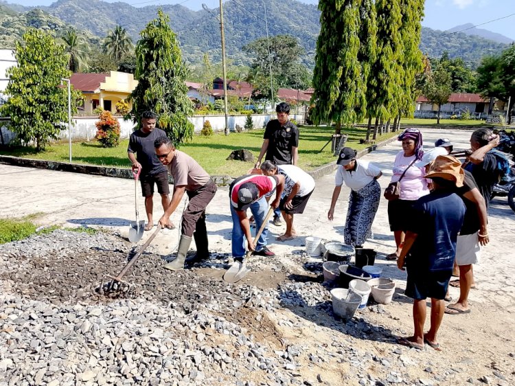 TribrataNewsEnde.Com - Semangat toleransi dan gotong royong ditunjukkan secara nyata oleh jajaran Kepolisian Sektor Wolowaru Polres Ende Polda NTT, dengan menggelar kegiatan bakti religi di Paroki Hati Amat Kudus Wolowaru. Kegiatan ini berfokus pada pengecoran pembangunan gedung serbaguna dan kantor paroki, sekaligus diiringi dengan penyerahan bantuan atau tali asih.